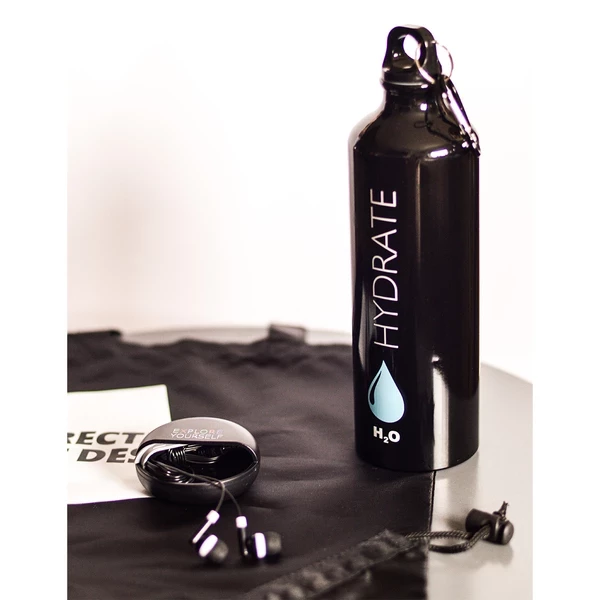 Bidon aluminiowy o pojemności 800 ml, błyszczącej powierzchni, z karabińczykiem. Posiada szczelne zamknięcie typu leak proof zapobiegające wyciekaniu płynów. Nie zawiera BPA.
