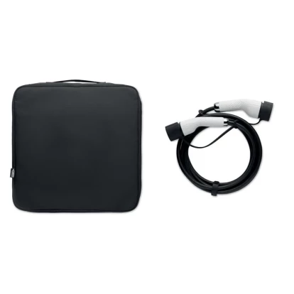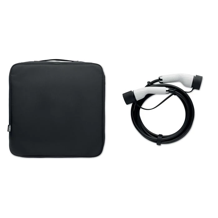 Wytrzymała, wyściełana torba na kabel do ładowania, wykonana z materiału 600D RPET, z wewnętrznymi przegródkami z siatki, przeznaczona do samochodów elektrycznych.